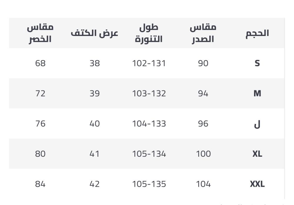 نرجو اخذ القياسات حسب الجدول المرفق للفستان